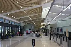 Der Northwest Florida Beaches International Airport verfügt über ein Passagierterminal. In diesem befinden sich sieben Flugsteige, von denen sechs mit Fluggastbrücken ausgestattet sind.[6]