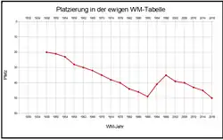 | 8 WM-Spiele 2 Siege 3 Unentschieden 3 Niederlagen 7:8 Tore | |