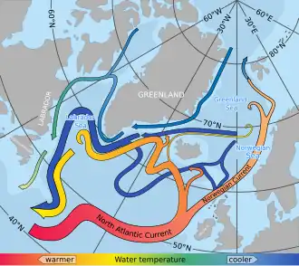 In Jahren, in denen im Winter eine starke Strömung nach Norden fließt, sorgt der Strom dafür, die Eisbildung in der Barentssee stark zu vermindern.
