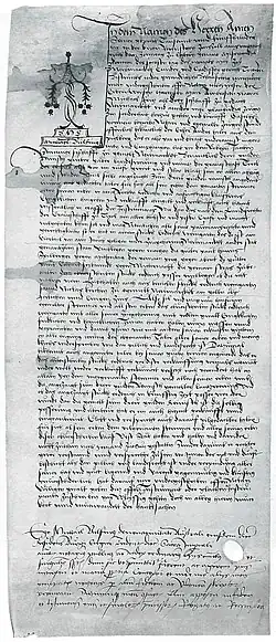 Notwendiger Bestandteil der Unterfertigung des Notars war sein Notariatssignet. Die Instrumente entstanden häufig auf der Basis von verknappten Vornotizen, die die Notare in sogenannten Imbreviaturen, den buchförmigen Notarsregistern, aufzeichneten und dann zur Grundlage der mit vollem Formular ausgefertigten Urkunden machen konnten. Diese Imbreviaturen (= abgekürzte Aufzeichnungen) sind selten überliefert und weisen mit Durchstreichungen (Kanzellierungen) von Einzeleinträgen auf eine erfolgte Mundierung hin.[1]