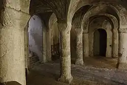 Der älteste Teil der Kirche ist die Krypta, die auf die erste Hälfte des 11. Jahrhunderts zurückgeht und unter dem Chor liegt. Sie ist als dreischiffige Hallenkirche mit rechtwinkligem Grundriss angelegt und endet in einer dreiteiligen Apsis. Die Kreuzgratgewölbe der drei Schiffe ruhen auf sechs Säulen, die Deckenmalereien stammen aus dem 16. Jahrhundert. Die in den Wänden eingeschnittenen Nischen sind ehemalige Fenster, die später zugemauert wurden.