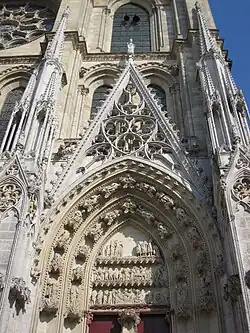 Das auf der rechten Seite der Fassade gelegene, sehr reich verzierte Portal wurde 1320[12] auf Wunsch der Schöffen der Stadt errichtet. Es ähnelt in seiner Komposition und seinem Stil dem Südportal La Calende der Kathedrale von Rouen. Während der Revolution wurde es verwüstet, insbesondere die gesamten Statuen in den unteren Fensteröffnungen und ein Teil der Verzierung des Tympanons, wo die Köpfe der Statuen verschwanden.[13]
