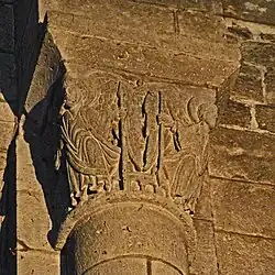 Bei den Arkaden der Chorapsis findet sich ein Kapitell, auf dem zwei Pelikane sich die Brust aufreißen, um ihr Blut auf die zwischen ihnen stehenden Jungen tropfen zu lassen. Da die Bildhauer der Romanik den Vogel Pelikan nur aus der Überlieferung kannten, wird er immer wieder als ein Adler dargestellt, so auch hier. Nach dem Physiologus (2. Jahrhundert) töten die Pelikaneltern ihre Jungen, bereuen die Tat und trauern dann drei Tage um sie. Nach dem dritten Tag reißt sich die Mutter den Brustbereich auf, ihr Blut tropft auf die toten Jungen und erweckt sie wieder zum Leben. Für die Christen wurde dies ein Sinnbild für den Opfertod und die Auferstehung Jesu Christi. Ein weiteres Kapitell in einer Kapelle stellt zwei Schafsträger dar, Männer, die jeweils ein verlorenes Schaf quer über der Schulter tragen. Unweit zeigt ein anderes Kapitell eine auf einem großen Fisch reitende Person.