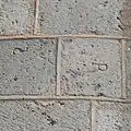 Das Mauerwerk besteht überwiegend aus großformatigen Werksteinen aus grauem Andesit, in regelmäßigen Schichten. Einige Wandpartien sind allerdings auch aus kleinformatigeren Natursteinen unterschiedlicher Farbschläge in unregelmäßigem Schichtenmauerwerk gefügt.