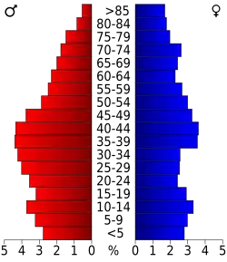 Auf das gesamte County bezogen setzte sich die Bevölkerung zusammen aus 22,9 Prozent Einwohnern unter 18 Jahren, 8,1 Prozent zwischen 18 und 24 Jahren, 29,3 Prozent zwischen 25 und 44 Jahren, 22,6 Prozent zwischen 45 und 64 Jahren und 17,1 Prozent waren 65 Jahre alt oder darüber. Das Durchschnittsalter betrug 39 Jahre. Auf 100 weibliche Personen kamen 106,6 männliche Personen. Auf 100 Frauen im Alter von 18 Jahren oder darüber kamen statistisch 106,6 Männer.