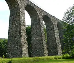- das 30 m hohe und über 14 Pfeiler führende Neuländer Viadukt mit einer Länge von 198 m, erbaut 1898–1900, technisches Denkmal