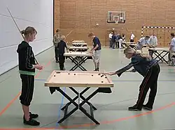 Novuss ist ein aus Estland und Lettland stammendes Geschicklichkeitsspiel für zwei oder für vier Spieler, das Ähnlichkeiten mit Billard und Carrom aufweist.