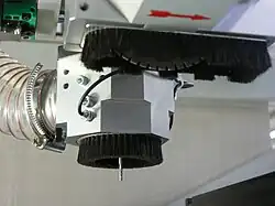 Bei den Offline-Nutzentrennern wird meistens die Trennvorrichtung bewegt, während die Leiterplatte in der Aufnahme liegt. Der Frässtaub wird ober- oder unterhalb der Leiterplatte abgesaugt.