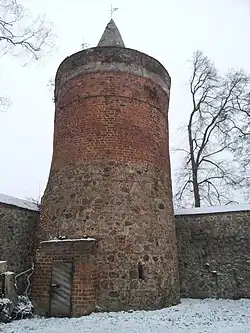 - Die nahezu vollständig erhaltenen Wehrmauern aus dem 14. bis 15. Jahrhundert umschließen die Altstadt auf einer Länge von 1350 Metern mit ursprünglich zwölf Türmen, sie bestehen aus Felssteinen und wurden mit Ziegeln ergänzt. Von den beiden Stadttoren (Frankfurter und Zielenziger Tor) sind nur die Fundamente erhalten.