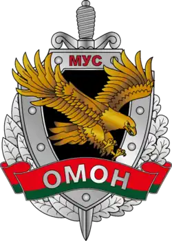 — OMON — russisch Отряд милиции особого назначения belarussisch Атрад міліцыі асобага прызначэння | |