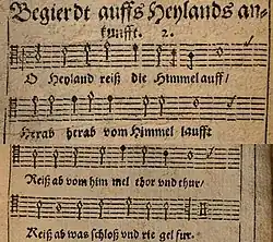 - ↑ „O Heiland, reiß die Himmel auf“. In: Evangelisches Gesangbuch. 4. Auflage. Nr. 7. Lutherische Verlagsgesellschaft, Kiel 2007, ISBN 978-3-87503-099-0 (verweist auf „M[elodie]: Köln 1638, Augsburg 1666“).