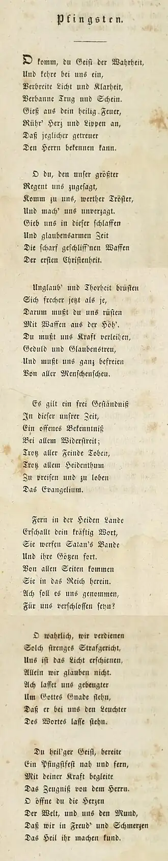 - ↑ Im deutschen Vorgänger Gesangbuch (hrsg. von der Konferenz der Süddeutschen Mennonitengemeinden e. V. Ludwigshafen, 2. Aufl. 1978) Nr. 217.