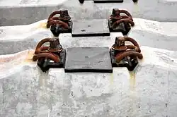Die Befestigung der Schienen erfolgt durch eine Bohrung in den Winkelführungsplatten mit in Kunststoffdübel in der Schwelle einzudrehenden Schwellenschrauben. Letztere sind Standardschrauben für Betonschwellen. Zwischen Schwellenschraube und Schienenfuß befindet sich mit der Epsilonspannklemme ebenfalls ein bereits früher standardisiertes (elastisches) Befestigungselement. Die Winkelführungsplatten haben die dafür erforderlichen Aufnahmestellen: eine Rille über dem V außen (in der sich die Schenkel der Mittelschlaufe abstützen) und einen Bock (oder eine Leiste) innen (als Anschlag für den Bogen der Mittelschlaufe, bei dessen Erreichen das Eindrehen der Schraube beendet ist).