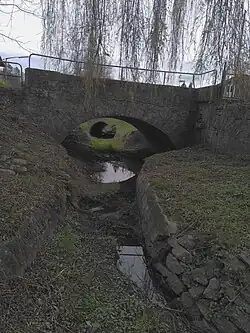 Die Schafhofbrücke vom Bett des Dürrbachs in Oberdürrbach, Blick nach Süden