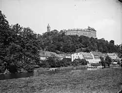 Das Obere Schloss oberhalb von der Weißen Elster und dem Elstersteig