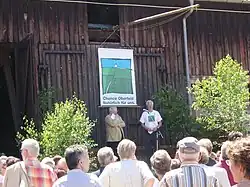 Der Lernort Bauernhof, eine durch die Stiftung Hofgut Oberfeld getragene Initiative, hat sich im Arbeiterhaus Nummer 140 in der Erbacher Straße niedergelassen. Er will mit nachhaltiger Bildungsarbeit in den Bereichen Landwirtschaft, Ernährung und Nahrungszubereitung als Außerschulischer Lernort Kinder, Jugendliche und Erwachsene erreichen. Ziel ist es, die ökologischen, ökonomischen, gesundheitlichen und sozialen Faktoren des eigenen Ernährungs- und Konsumverhaltens einsichtig zu machen und Anstöße zu positiven Veränderungen zu geben. Durch aktives Lernen mit Kopf, Herz und Hand soll der Zusammenhang zwischen Landwirtschaft und Ernährung begreifbar und die Erzeugung und Verarbeitung von Lebensmitteln mit viel Spaß ausprobiert werden. Der Lernort möchte dazu anregen, sich für die eigene Gesundheit und die der Mitwelt aktiv einzusetzen.[28] Das Projekt richtet sich mit seinen Angeboten an Kindergärten, Schulen, außerschulische Bildungseinrichtungen sowie an interessierte Erwachsene, Lehrkräfte, Multiplikatoren und Verbraucher.[29][30] Es gibt ein vielfältiges Veranstaltungsangebot; jährlich werden etwa 200 Halbtagsveranstaltungen durchgeführt. Schulklassenprojekte, Kindergeburtstagsveranstaltungen, feste Bauernhof-AGs, Ferienwochen, Schulungen für Erwachsene: Immer wird altersgerecht, in kleinen Gruppen und anhand von unterschiedlichen Schwerpunkten (Von der Kuh zur Butter, Vom Korn zum Brot etc.) die Landwirtschaft „begreiflich“ gemacht, wobei jedes einzelne Projekt weit über den Charakter einer bloßen Führung hinausgeht. Verschiedene Verfahren zur Qualitätsentwicklung der umweltpädagogischen Arbeit werden angewendet. 2011 wurde die Arbeit des Lernort Bauernhof im Bereich Bildung für nachhaltige Entwicklung für Familien mit dem renommierten Karl-Kübel-Preis sowie 2012 vom hessischen Sozialministerium als „Lernort der Zukunft Hessen“ ausgezeichnet. Weiterhin ist der Lernort Bauernhof Mitglied in der Bundesarbeitsgemeinschaft Lernort Bauernhof e.V und in der hessischen Initiative „Bauernhof als Klassenzimmer“. Da die Teilnehmerbeiträge nur einen Teil der Ausgaben decken, bleiben Fördergelder in Form von Spenden und Zuwendungen für den Erhalt der Arbeit des Lernort Bauernhof notwendig; eine umfangreichere öffentliche Unterstützung der Arbeit ist ebenfalls angestrebt.