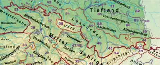 - ↑ Emil Meynen, Josef Schmithüsen (Hrsg.): Handbuch der naturräumlichen Gliederung Deutschlands. Bundesanstalt für Landeskunde, Remagen/Bad Godesberg 1953–1962 (9 Lieferungen in 8 Büchern, aktualisierte Karte 1:1.000.000 mit Haupteinheiten 1960).