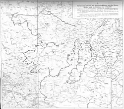Die Frage nach dem genauen Verlauf der 1241 festgelegten Grenzen beschäftigte die Historiker seit Anfang des 19. Jahrhunderts. Im Jahre 1908 veröffentlichte Alfred Meiche eine umfassende Interpretation der Urkunde, die bis heute weitgehend akzeptiert ist.[5] Einschränkend meint Gertraud Eva Schrage: „Die im Zusammenhang mit dem Zagost [Abschnitt Ia] überlieferten Namen sind jedoch auch in dieser Urkunde nicht zu identifizieren, so daß die von Alfred Meiche vorgenommene Interpretation so gut wie nicht nachvollzeihbar ist.“[6] Die Deutung der Grenzurkunde wird vor allem dadurch erschwert, dass für die Geländemerkmale alte, längst verschwundene Namen verwendet werden. Oft sind sie nur nach dem Hörensagen aufgeschrieben wie z. B. Nakuchipozkaki im Grenzabschnitt Ia, was Meiche als eine phonetische Wiedergabe des slawischen na kuči po kački deutete und als im Winkel an der Katzbach übersetzte, da die Katzbach auch Kočka hieß. Außerdem benutzte Meiche historische Urkunden über Schenkungen und Dienst- bzw. Abgabepflichten, die für einzelne Orte darüber Auskunft geben, ob sie unter meißnischer oder böhmischer Herrschaft standen. Eine weitere Schwierigkeit besteht darin, dass in der Urkunde nur die groben Eckpunkte der Grenzen angegeben sind, weshalb sich Meiche zusätzlich „auf topographische Untersuchungen [stützt], die zeigen, dass sich die alten Herrschaftsgrenzen zumeist dem Laufe heutiger Flurgrenzen anschmiegen.“[5]:155 Er nutzte vor allem den Topographischen Atlas des Königreichs Sachsen[7], der von Jakob Andreas Hermann Oberreit erstellt und zwischen 1836 und 1860 veröffentlicht wurde. Die nebenstehenden Karten zeigen den von Meiche rekonstruierten Grenzverlauf. Erklärungen zu einzelnen Grenzpunkten stehen unten in den Anmerkungen zum Urkundentext.