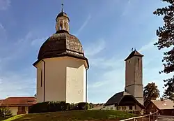 - Wallfahrtskirche Maria Bühel: zweitürmig, zwischen 1663 und 1677 erbaut; Votivtafeln, Statuen von Josef Anton Pfaffinger, Gemälde von Johann Michael Rottmayr