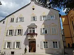 Dieses Haus zeigt sich in seinem nördlichen Bauteil und im ersten Stock in um 1900 erneuerter Form. An der Fassade befindet sich über dem Rundbogentor ein Balkon mit Eisengitter. Im südlichen Teil des Erdgeschosses sind Kreuzgratgewölbe erhalten.