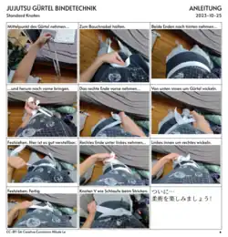 Zum Beispiel wird der Iaidō-Gürtel mit ca. 4 m Länge drei- bis viermal um den Körper gewickelt und dann mit einem besonders flachen Knoten geschlossen; anschließend wird der Gürtel so verschoben, dass der Knoten hinten auf den Lendenwirbeln sitzt (siehe nebenstehende Zeichnung).