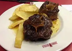 - ↑ „Ochsenschwanzsuppe mit Schwarzbier.“ In: Christopher Trotter, Maggie Ramsay: Alles vom Rind. h.f. ullmann, Köln 2016, ISBN 978-3-8480-0801-8 (Originalausgabe: The whole cow. Recipes & lore for beef and veal. Pavillon Books); S. 185.