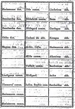 - ↑ Nekrologium monasterii S. Michaelis. Hrsg. von Anton Christian Wedekind: Notea zu einigen Geschichtsschreibern des Deutschen Mittelalters, Dritter Band, Neuntes Heft, Note V, Hamburg 1836, S. 20.