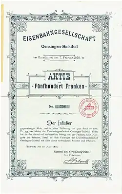- ↑ Die Holzkastenwagen waren mit «ÖBB» beschriftet, die Lokomotiven hingegen mit OeBB, siehe Beat Birkhofer: Oensingen-Balsthal-Bahn, seit 1899 im Dienst der Region. 1999, ISBN 3-905404-06-0, S. 102–104.