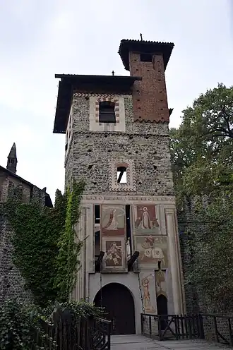 Das Dorf Oglianico befand sich in einer strategischen Transit- und Grenzlage, was zu ständigen Kriegen führte. Die Notwendigkeit, die Bevölkerung, die Ernte und das Vieh zu schützen, veranlasste die Einwohner von Oglianico, einen der wichtigsten Schutzräume des Canavese zu errichten, geschützt durch einen imposanten Torturm, ein typisches Beispiel eines dreiseitigen mittelalterlichen Turms, dessen vierte Seite offen ist zum Inneren hin. Es handelt sich um einen so gut erhaltenen und aus architektonischer Sicht bedeutsamen Turm, dass er von Alfredo D’Andrade im mittelalterlichen Dorf Valentino anlässlich der italienischen Generalausstellung von 1884 originalgetreu nachgebildet wurde. Heute ist es das Freilichtmuseum Borgo medioevale di Torino.[2]