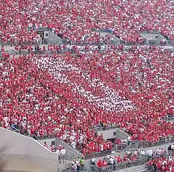 Seit 1938 ist der Block O der offizielle Fanblock der Buckeyes. Bestehend aus der gleichnamigen Studentenorganisation ist er für lautstarkes Anfeuern und für seine Choreographien bekannt.[34] Er befindet sich neben der Band auf der Südtribüne im Ohio Stadium.