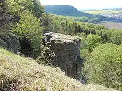 | Der Ohmberg (links) im nordöstlichen Ohmgebirge | ||