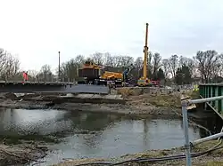 Um einen nur kurzzeitig zu unterbrechenden Autoverkehr zwischen den Ortsteilen zu ermöglichen, wurde die Brücke an einem Standort etwa 30 Meter südlich der seinerzeit bestehenden Behelfsbrücke geplant. Dieses Vorhaben wurde kritisiert, weil damit ein wesentlich höherer Landschaftsverbrauch und möglicherweise eine höhere Lärmbelästigung verbunden wäre. Dem setzte die Verwaltung einen detaillierten Landschaftsplan und ein Lärmschutzgutachten entgegen.[6] In das Bauvorhaben wurde die Schaffung von Ausgleichsflächen am Thiedebach in Leiferde und am Springbach in Melverode integriert. Im Zuge des Planfeststellungsverfahrens wurde auch ein Gutachten für den Hochwasserschutz erstellt und der Durchlassquerschnitt entsprechend gestaltet.