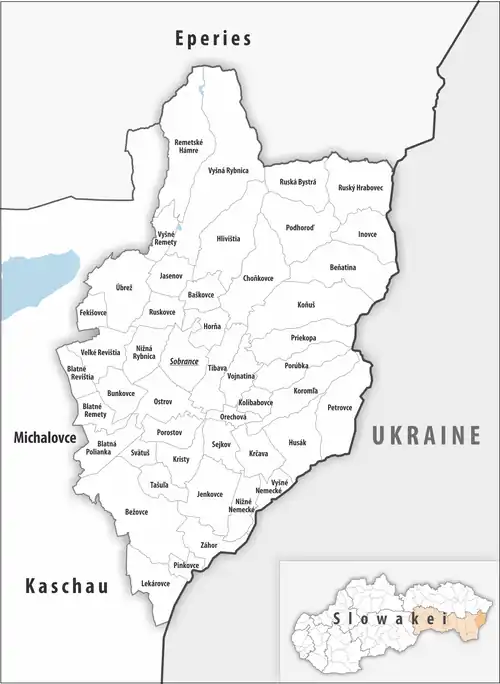 Der Okres Sobrance ist eine Verwaltungseinheit in der Ostslowakei mit 23.447 Einwohnern (2004) und einer Fläche von 538 km².