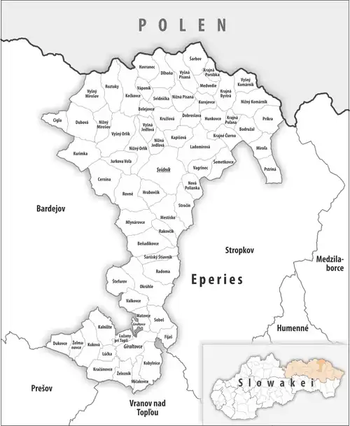 Historisch gesehen liegt der Bezirk vollständig im ehemaligen Komitat Sáros.