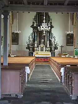 - Das ehemalige Pfarrhaus südwestlich der Kirche ist von 1794. Es ist ein zweigeschossiger Spätbarockbau mit Satteldach.