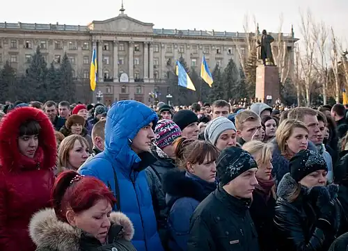 Am Morgen des 13. März 2012 gingen Dutzende von Einwohnern von Mykolajiw zur ersten Kundgebung in der Nähe der Polizeihauptwache.[43] Die Kundgebung bewegte sich zum Büro des Staatsanwalts der Provinz Mykolajiw.[44] Eine weitere Protestkundgebung wurde am Lenin-Platz abgehalten.[45][46]
