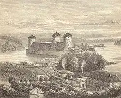 Anfang des 14. Jahrhunderts, als Finnland noch zum Schwedischen Königreich gehörte, wurde im Vertrag von Nöteborg die Grenze zwischen Schweden und dem russischen Staat Nowgorod quer durch Karelien gelegt. Genaue Bestimmungen fehlten in der großteils noch unerschlossenen Region Savo jedoch, weshalb die nur von einer Burg in Wyborg beschützte, östliche Grenze von Schweden-Finnland umkämpft blieb. Zur Verstärkung der Sicherheit und zur Kontrolle wichtiger Wasserwege beschlossen die Schweden, eine weitere Burg zu bauen. Olavinlinna wurde von Erik Axelsson Tott gegründet und nach dem Heiligen Olof benannt. Die Bauarbeiten begannen 1475.