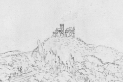 Burg Olbrück auf einer Zeichnung Renier Roidkins, um 1725