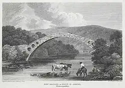Der damals 27 Jahre alte Edwards baute 1746 eine steinerne Brücke mit drei Bögen. Zwei Jahre später schwemmte ein starkes Hochwasser so viele entwurzelte Bäume und Äste gegen ihre Pfeiler und Widerlager, dass sie unter der Last des aufgestauten Wassers zusammenbrach.