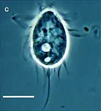 - ↑ Die Zuordnung zu den Scuticociliatia innerhalb der Oligohymenophorea wird durch die phylogenetischen analysen von Jamie McGowan et al. (2023) nahegelegt.