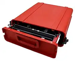 Die Box wird am Klappgriff getragen und wie ein Aktenkoffer aufrecht auf den Boden gestellt. So kann die Maschine nach Öffnen von zwei Verschlussklips am Tragegriff nach oben aus der Box herausgezogen werden. Sie wurde anfangs in Italien, später in Spanien und zuletzt in Mexiko hergestellt.