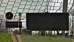 Auch die Fußballnationalmannschaft nutzte München häufiger als in den Vorjahren als Austragungsort. So trug sie 1973 zwei von acht Heimspielen im Olympiastadion aus.[64] Zur Fußball-Weltmeisterschaft 1974 in der Bundesrepublik Deutschland fanden hier weitere Spiele auch anderer Nationalmannschaften statt. Um die Kapazität zu erhöhen, wurde in der Nordkurve zusätzlich eine Tribüne für bis zu 5.000 Zuschauer errichtet, sodass insgesamt 80.000 Zuschauer Platz fanden.[65]
