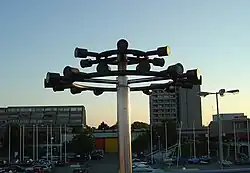Die Hafenmeisterei mit Aussichtsplattform und Fackel für das olympische Feuer