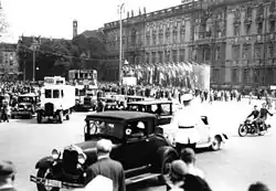 - ↑ Frederick Birchall: 100,000 Hail Hitler; U.S. Athletes Avoid Nazi Salute to Him. In: . The New York Times, 1. August 1936, S. 1.