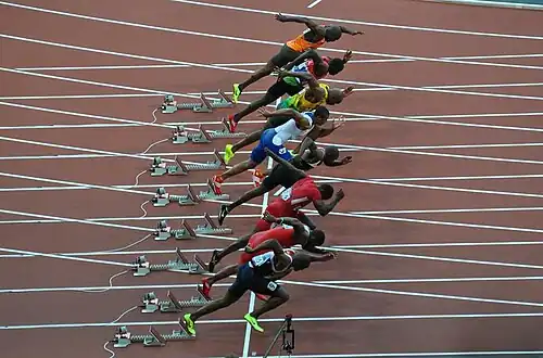 - ↑ Man Who Threw Bottle, Got Punched Before 100m Final Identified, Bericht und Videoclip, sbnation.com 5. August 2012 (englisch), abgerufen am 22. März 2022