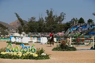 Nachdem im Jahr die 2007 die Panamerikanischen Spiele in Rio de Janeiro ausgetragen wurden, konnte für die olympischen Reitsportwettbewerbe auf die für die Panamerikanischen Spiele errichteten Sportstätten zurückgegriffen werden. Die Reitanlagen wurden nochmals umgebaut. Hierbei kam es im Januar/Februar 2016 zu 20-tägigen Unterbrechung der Bauarbeiten, da die beauftragte Baufirma aufgrund von Bauverzögerungen und Nichteinhaltung von Fristen gekündigt wurde. Anschließend konnten die Bauarbeiten wieder aufgenommen, so mussten die Unterkünfte für die Pferdepfleger und die Tierklinik noch fertiggestellt werden.[3]