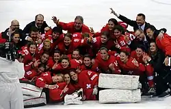 Die Schweizer Eishockeynationalmannschaft der Frauen nach dem Gewinn der Bronzemedaille