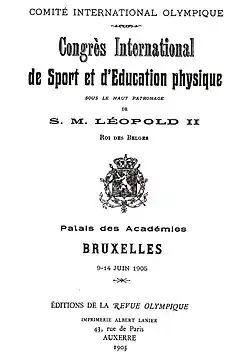 Die zweiten Olympischen Spielen 1900 in Paris verliefen äußerst unorganisiert. Ursache hierfür waren auch fehlende einheitliche Regeln und Bewertungskriterien für die Spiele. Einzelne Mitglieder des Internationalen Olympischen Komitees forderten deshalb einen Kongress zur Einführung einheitlicher Standards und eines Sportkodex. Coubertin nutzte den Besuch des belgischen Königs Leopold II. 1901 in Paris, den er davon überzeugen konnte, im Jahr 1903[16] einen Olympischen Kongress in Brüssel abzuhalten und die Schirmherrschaft zu übernehmen.