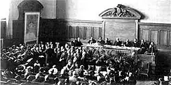 Coubertin hatte für den Kongress eine Liste mit 50 Ehrenmitgliedern verfasst.[13] Darunter waren neben Aristokraten, Diplomaten, Parlamentariern und Präsidenten wichtiger Sportverbände auch Persönlichkeiten der internationalen Friedensbewegung, beispielsweise Frédéric Passy, dem 1901 der erste Friedensnobelpreis zugesprochen wurde. Es ist ungeklärt, wer von den Ehrenmitgliedern tatsächlich anwesend war. Davon unabhängig bezeugen die auf dieser Liste verzeichneten Persönlichkeiten, welche erhebliche Bedeutung Coubertin diesem Kongress beimessen wollte. Diese Liste zeigt auch, dass Coubertin, der aufmerksam und mit eigenen Ausführungen[14] die Gründung der Interparlamentarischen Union 1889 und die übrigen, in jenen Jahren zahlreichen Aktivitäten der Friedensbewegung verfolgte und persönliche Kontakte pflegte, mit der Wiedereinführung der Olympischen Spiele nicht zuletzt auch das Ziel einer internationalen Verständigung und eines Völkerfriedens (paix des nations) beabsichtigte.[15]