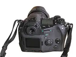 Auch die Bedienung der Kamera ist an professionellen Bedürfnissen ausgerichtet. Die Handhabung orientiert sich an den bedienerfreundlichen Konzepten der klassischen Spiegelreflexkameras. Alle wichtigen Funktionstasten sind übersichtlich und leicht erreichbar am Gehäuse angeordnet. Die Einstellungen werden in Kombination mit zwei Einstellrädern vorgenommen, die so angeordnet sind, dass sie wahlweise leicht mit dem Daumen oder dem Zeigefinger der rechten Hand bedient werden können. Auch der Wahlschalter für die Belichtungsarten ist ein einfaches Drehrad nach klassischem Vorbild. Über das Menü des LC-Monitors werden lediglich selten benötigte Einstellungen und Feintuning vorgenommen.